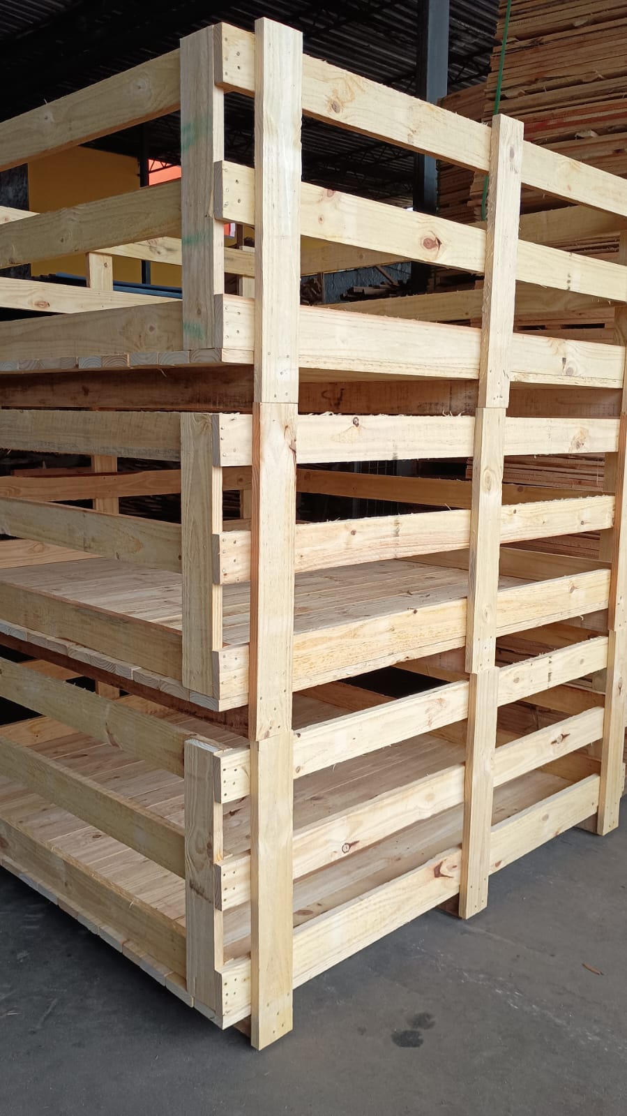 Usamos madeira de pinus e eucalipto na fabricação de nossas embalagens. O pinus autoclavado é reservado exclusivamente para decks, oferecendo maior resistência e longevidade. O eucalipto é valorizado por sua durabilidade superior e versatilidade. Com essas escolhas, buscamos sempre a excelência para atender às necessidades dos nossos clientes.